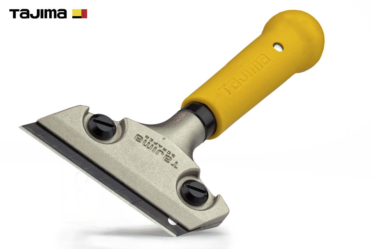 Скребок TAJIMA Scrape-Rite виконаний з високоякісного литого алюмінію, рукоятка виготовлена з товстого еластомеру і має ударний наконечник з нержавіючої сталі.